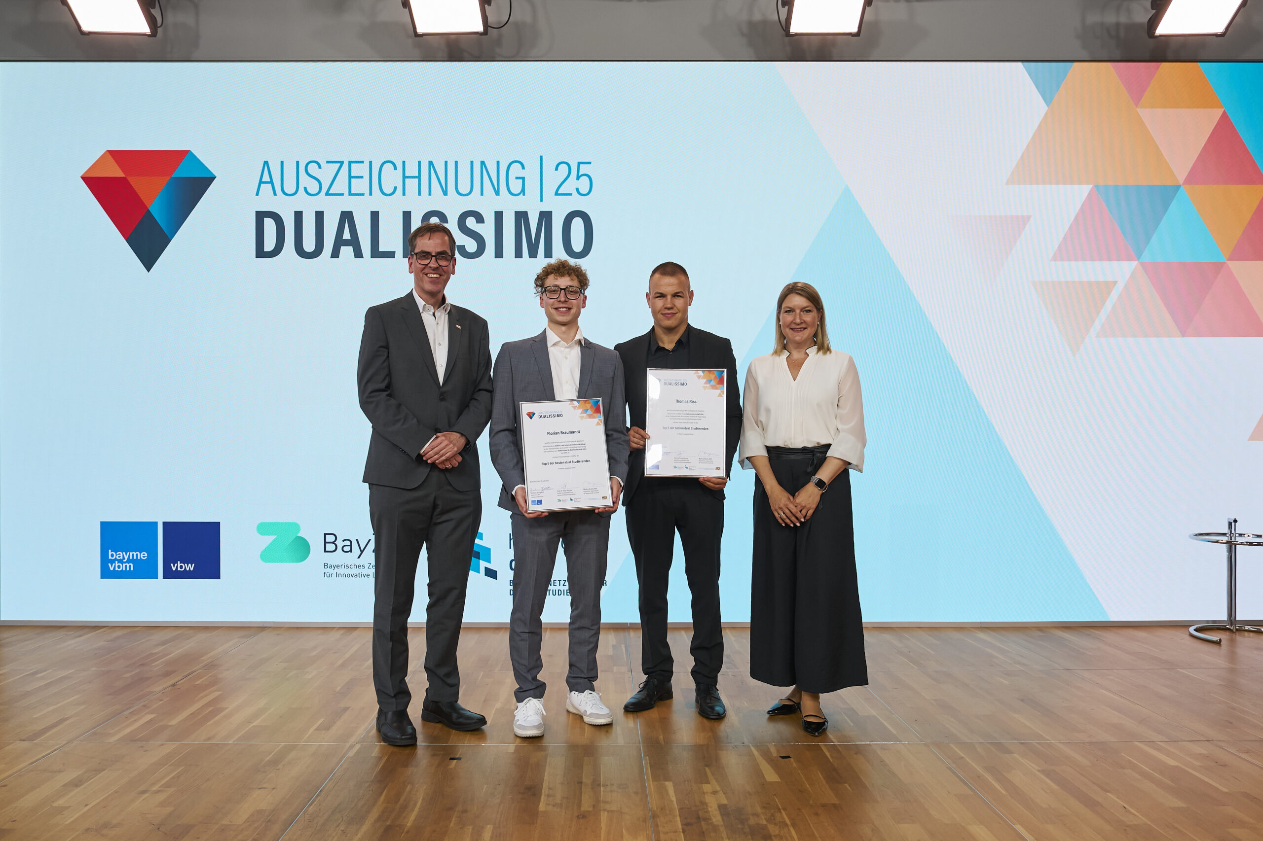 Florian Braumandl und Thomas Riss wurden für ihre herausragenden Leistungen im dualen Studium mit dem Dualissimo-Award ausgezeichnet.