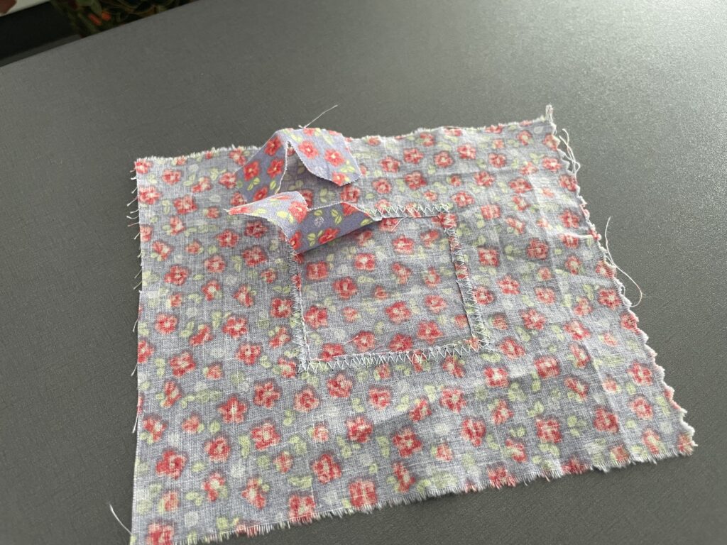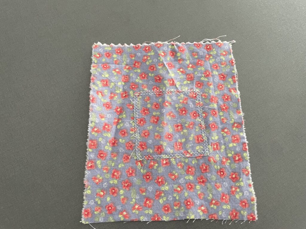 - Faden am Punkt befestigen, dabei durch alle Stoffschichten stechen